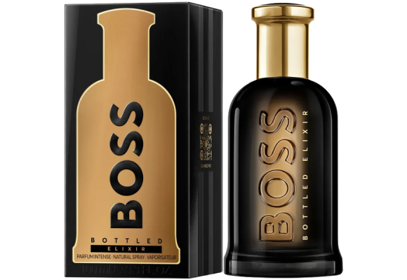 Boss Bottled Elixir Eau de Parfum Intense da grife Hugo Boss, família olfativa oriental especiado, perfume masculino espanhol lançado em 2023.