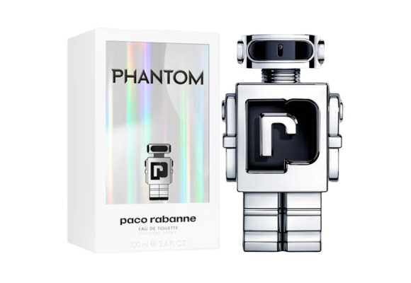 Phantom Eau de Toilette da grife Rabanne, família olfativa amadeirado aromático, perfume masculino francês lançado em 2021.