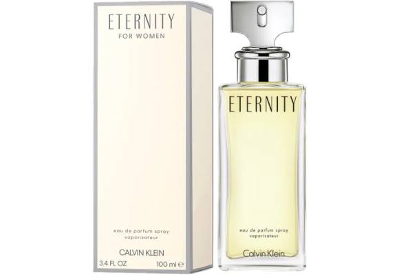 Eternity Eau de Parfum da Grife Calvin Klein, família olfativa floral, perfume feminino espanhol lançado em 1988.