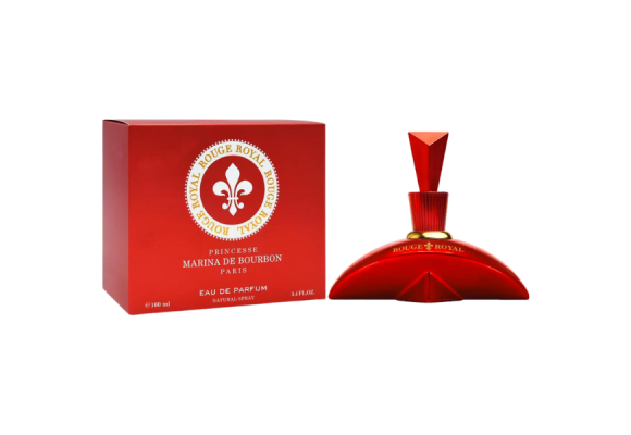 Rouge Royal Eau de Parfum da grife Marina de Bourbon, família olfativa floral frutado, perfume feminino francês lançado em 2002.