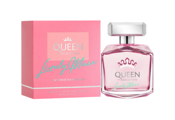 Queen Of Seduction Lively Muse Eau de Toilette da grife Antonio Banderas, família olfativa floral frutado, perfume feminino espanhol lançado em 2021.